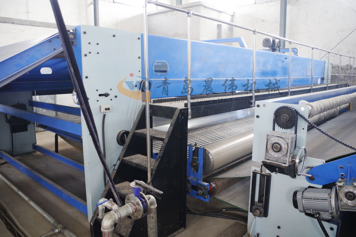 4. CWSL-梳理機(jī):單錫林梳理機(jī)主要是將前道工序棉網(wǎng)層進(jìn)行單纖維狀態(tài)分散過程,并且等寬均勻的輸出到鋪網(wǎng)機(jī),單錫林梳理機(jī)適用于土工布、仿絲棉等無紡布生產(chǎn)線最核心部位。高速高產(chǎn),出網(wǎng)速度高,有效工作機(jī)幅寬,產(chǎn)量高梳理效果好,設(shè)備穩(wěn)定不易故障。