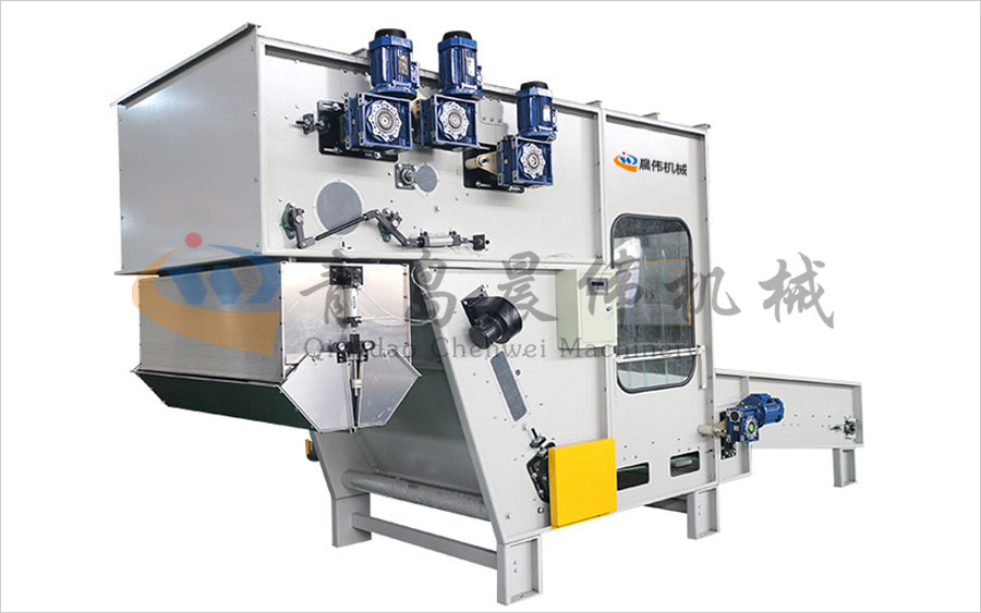 將各種等級(jí)整包或半包料進(jìn)行初步打開,無需人工抖棉,降低勞動(dòng)強(qiáng)度,通過稱重系統(tǒng)PLC計(jì)算進(jìn)行準(zhǔn)確配比,均勻平鋪到長(zhǎng)簾上。