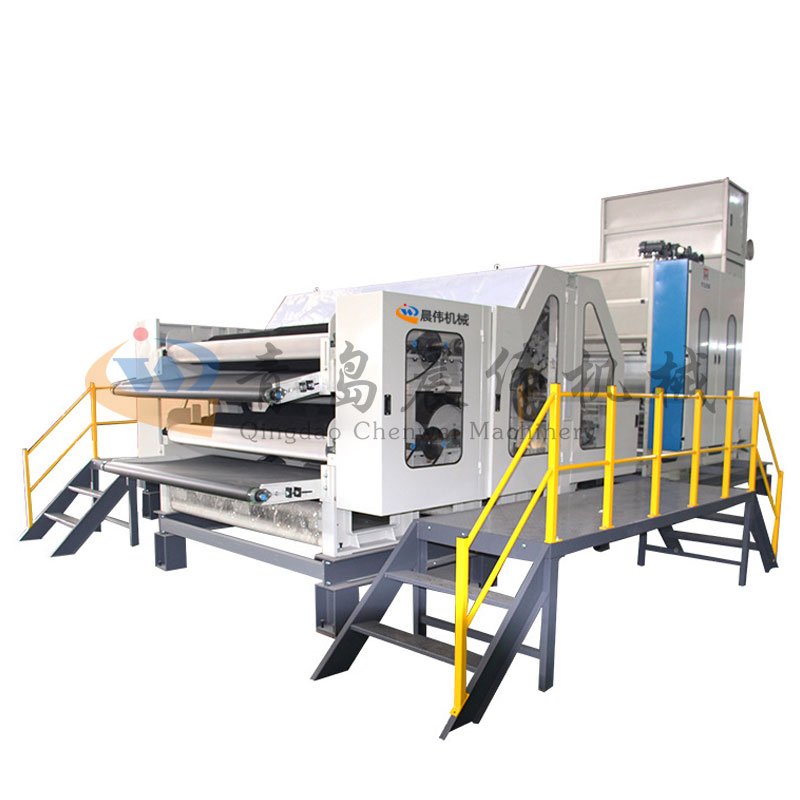 雙錫林梳理機主要是將前道工序棉網(wǎng)層進行單纖維狀態(tài)分散過程,并且等寬均勻的輸出到鋪網(wǎng)機,雙錫林梳理機適用于針刺,水刺等短纖維無紡布生產(chǎn)線核心部位,一般與鋪網(wǎng)機配合使用,也可以直接鋪網(wǎng)使用。
